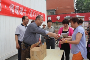 按照每周五到幫扶社區(qū)開展文明創(chuàng)建幫扶活動的有關要求,作為焦作市市級文明單位的綠源公司自5月6日以來,堅持每周五到幫扶社區(qū)開展志愿者服務活動,先后6次到恩華社區(qū)開展衛(wèi)生打掃除、清理小廣告、打掃居民樓院、清掃街道、端午節(jié)包粽子、慰問困難低保戶等活動。公司志愿者服務小組人員不怕臟、不怕累,有時頂著炎熱的太陽,有時冒著細雨,認真細致地堅持開展幫扶活動,為文明創(chuàng)建工作盡自己綿薄之力,大家的辛苦努力也得到了社區(qū)居民歡迎和認同。