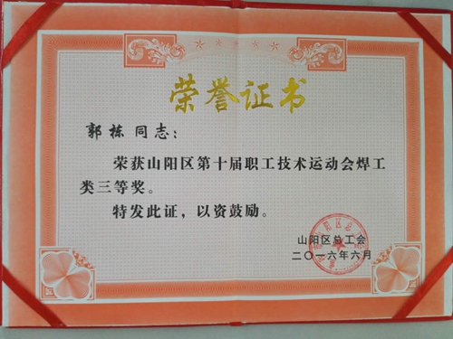 焦作市綠源熱力有限公司高度重視此次比賽,為確保公司職工賽出水平、取得優(yōu)異成績,公司對此次比賽進(jìn)行了專門的部署,并統(tǒng)一思想,提高認(rèn)識,加強(qiáng)領(lǐng)導(dǎo),為順利參賽做好一切保障工作。為了加強(qiáng)與其它單位的技術(shù)交流和學(xué)習(xí),公司經(jīng)過選拔共派出6名電工、3名焊工代表公司參加比賽,在為期一天的比賽交流學(xué)習(xí)過程中,公司參賽的員工在與其它單位的技術(shù)能手交流和學(xué)習(xí)過程中受益匪淺,經(jīng)過不懈努力和頑強(qiáng)拼搏,取得了優(yōu)異的成績。薛迎軍、劉龍濤、張光明獲得了電工組一二三等獎,特別是公司職工郭棟獲得了焊工組三等獎,打破了公司自參加此項(xiàng)比賽以來從未有人獲獎的記錄,填補(bǔ)了公司的一項(xiàng)空白。