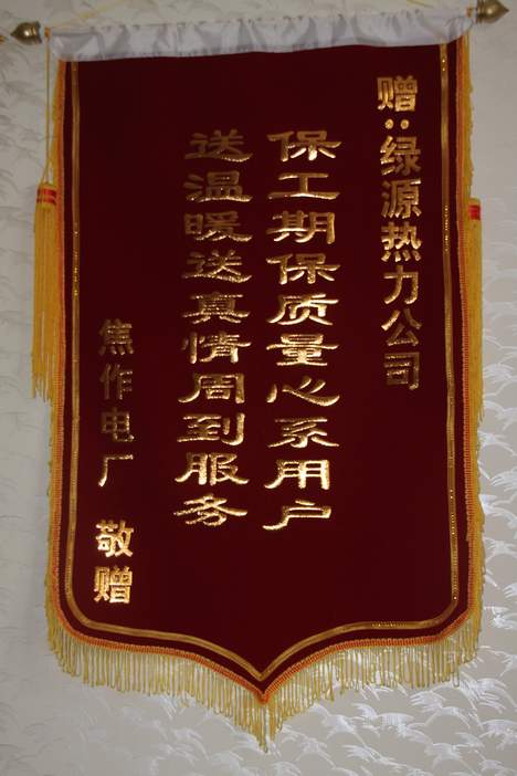 為了使電廠居民過一個溫暖祥和的春節(jié),綠源熱力有限公司和電廠小區(qū)雙方共同努力,加班加點,克服重重困難,趕在大年三十當天實現(xiàn)了電廠小區(qū)正式供暖。電廠領(lǐng)導為了表示感謝之情,在春節(jié)過后上班的第一周就向綠源公司贈送了錦旗!贊揚綠源公司“送溫暖送真情周到服務(wù),保工期保質(zhì)量情系用戶!”