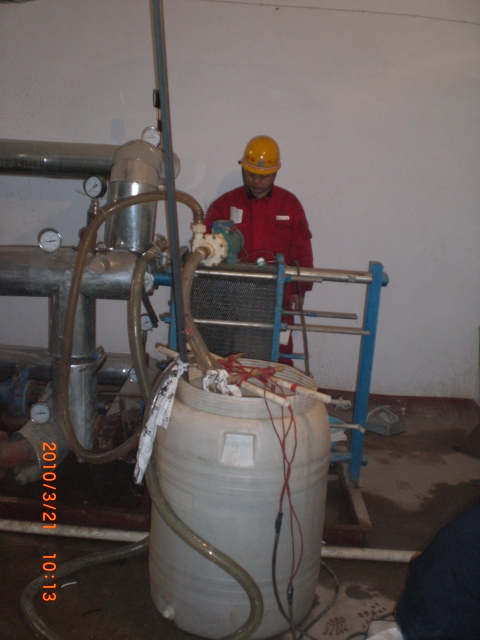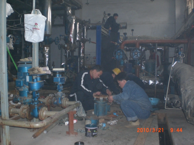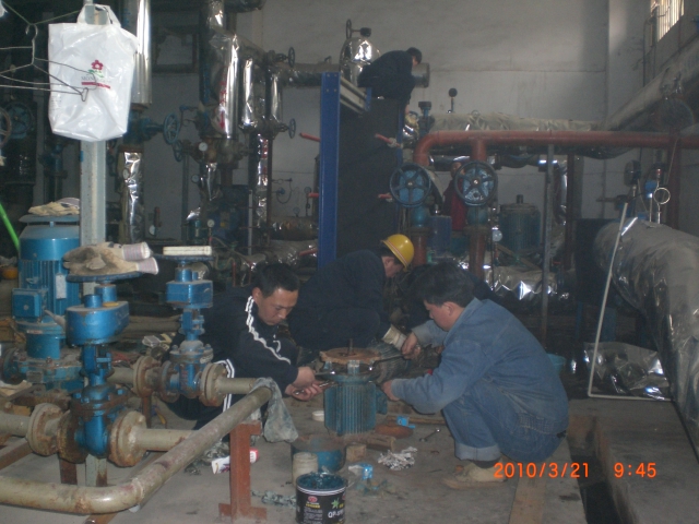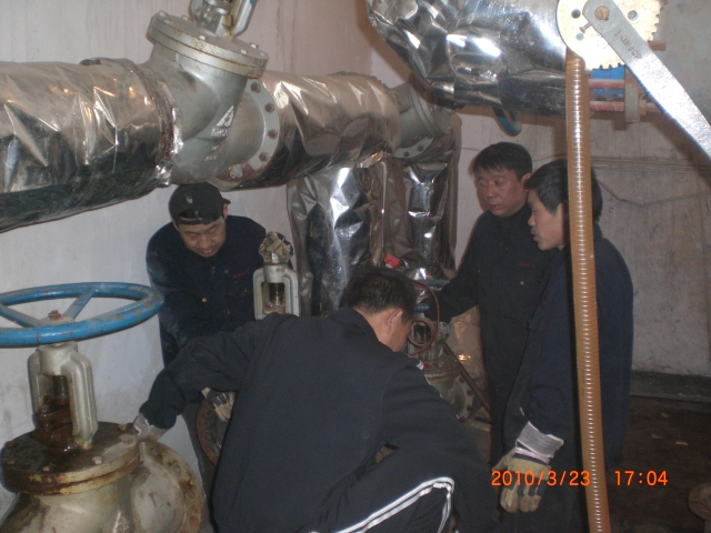 生產(chǎn)科所有一線職工共分為3個(gè)小組,分別由張小倉、張?jiān)隽?、李虎三名調(diào)度帶隊(duì)。按照生產(chǎn)科檢修計(jì)劃,張小倉組首先到國稅小區(qū)換熱站檢修,李虎組到糧食局換熱站檢修,張?jiān)隽两M在廠區(qū)檢修。至23日下午,糧食局換熱站已完成檢修,24日下午龍?jiān)春趽Q熱站檢修完畢,截至目前,國稅局換熱站檢修工作已進(jìn)入收尾階段,26日上午,將進(jìn)行龍?jiān)春黄趽Q熱站的檢修工作。