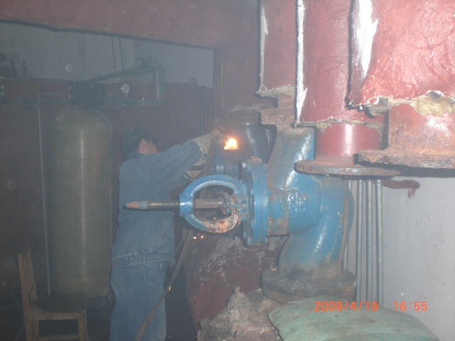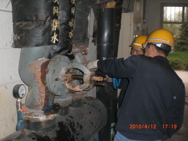 張小倉組4月12日至20日,分別對農(nóng)發(fā)行換熱站、太極景潤換熱站進行了檢修;李虎組4月14日至16日檢修豐收小區(qū)換熱站,4月16日至19日,檢修中國人壽換熱站,截止到4月19日已完成中國人壽換熱站檢修。通過檢修,共需更換18個大閥門,其中DN150截止閥7個,DN200截止閥8個,DN250截止閥3個。