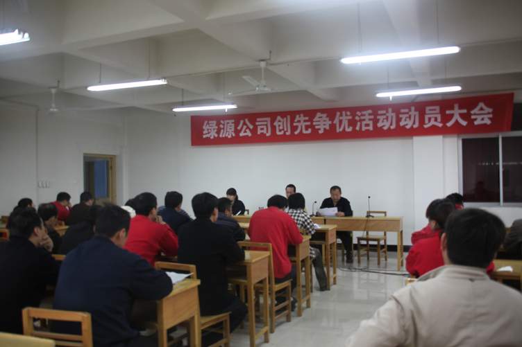 2010年5月17日上午8點,綠源公司在公司二樓會議室組織全廠職工召開了“綠源公司創(chuàng)先爭優(yōu)活動動員大會”,會議按照市建委黨組焦建發(fā)[2010]12號文件精神和工作部署,決定從即日起在公司黨支部和黨員中開展“五比一爭”創(chuàng)先爭優(yōu)活動,即比學(xué)習(xí)、比黨性、比服務(wù)、比創(chuàng)新、比業(yè)績、爭先進(jìn)。會議由書記金凱主持,公司總經(jīng)理張智出席了會議,全廠正式職工53人全部按時到會。