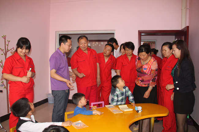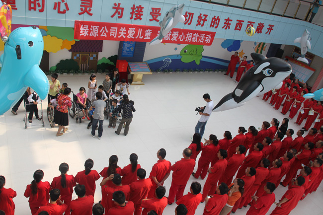 兒童福利院李繼鋒院長(zhǎng)和衛(wèi)美麗書記接待了綠源熱力,并對(duì)綠源熱力一直以來支持兒童福利院的建設(shè)、關(guān)心兒童福利工作表示感謝。之后福利院的兒童們現(xiàn)場(chǎng)表演了節(jié)目,看了孩子們的表演,大家心情非常激動(dòng),有些不禁潸然淚下;緊接著捐款儀式開始,大家踴躍捐款,50元、100元、200元…捐款儀式結(jié)束后,李院長(zhǎng)帶領(lǐng)我們參觀了福利院各種康復(fù)和教育班,看望了正在接受教育和康復(fù)治療的兒童。