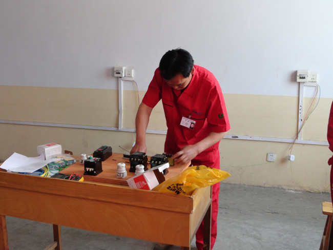 圖為維修電工劉龍濤參賽現(xiàn)場