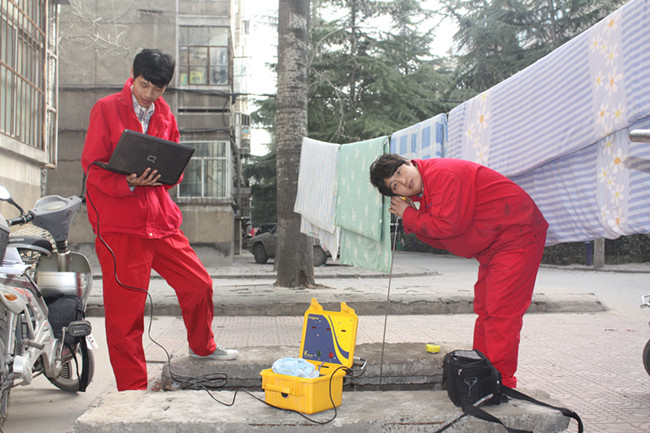 圖為我公司技術科人員為各小區(qū)檢測泄露的管網(wǎng)照片: