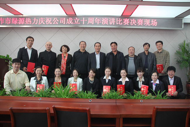 今年是綠源熱力有限公司成立十周年,值此十周年慶祝之際,公司結(jié)合我市開展“人民在心中,轉(zhuǎn)型我先行”活動(dòng),于2013年10月26日上午舉辦了以“我的崗位與服務(wù),綠源的發(fā)展和未來,繼往開來,重任在肩”等主題活動(dòng)的演講比賽。公司以此為平臺(tái),一方面加強(qiáng)企業(yè)文化建設(shè),另一方面在豐富職工文化生活的同時(shí),更進(jìn)一步提高企業(yè)凝聚力和向心力,從而有力推進(jìn)公司各項(xiàng)建設(shè)的不斷發(fā)展。