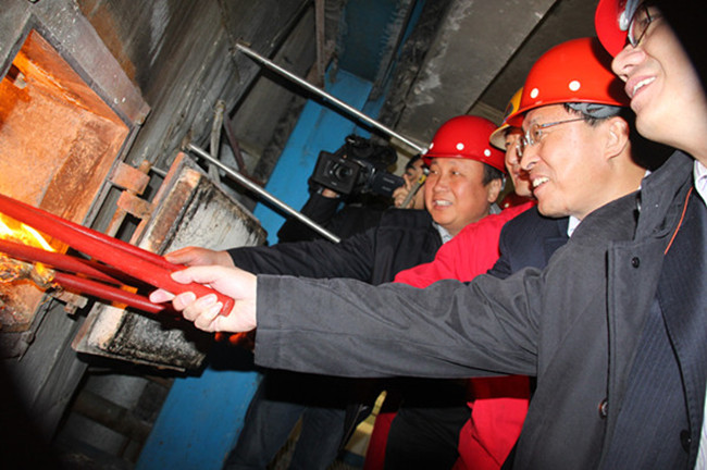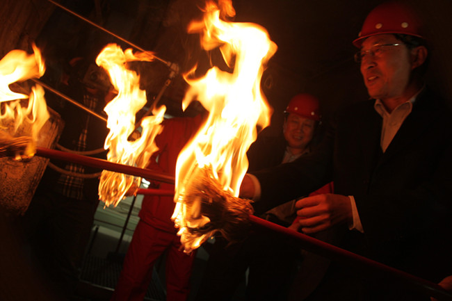 8日上午在我公司集中供暖2號(hào)鍋爐前,我市舉行了集中供暖點(diǎn)火預(yù)熱儀式。隨著一個(gè)點(diǎn)燃的火把被送入爐膛,爐中瞬間燃?xì)庑苄艽蠡穑瑯?biāo)志著我市今冬集中供暖由調(diào)試階段進(jìn)入預(yù)熱供暖狀態(tài)。