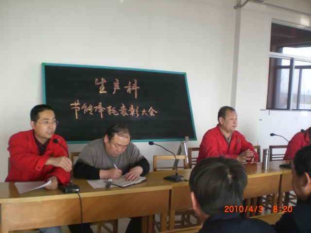 4月3日,生產(chǎn)科在公司二樓會議室組織召開了2009—2010采暖季節(jié)能降耗表彰大會。會議由生產(chǎn)科科長張忠生主持,書記金凱在會上做了重要講話,希望廣大職工奮發(fā)進取、再接再厲,為公司節(jié)能降耗做出新的更大貢獻。